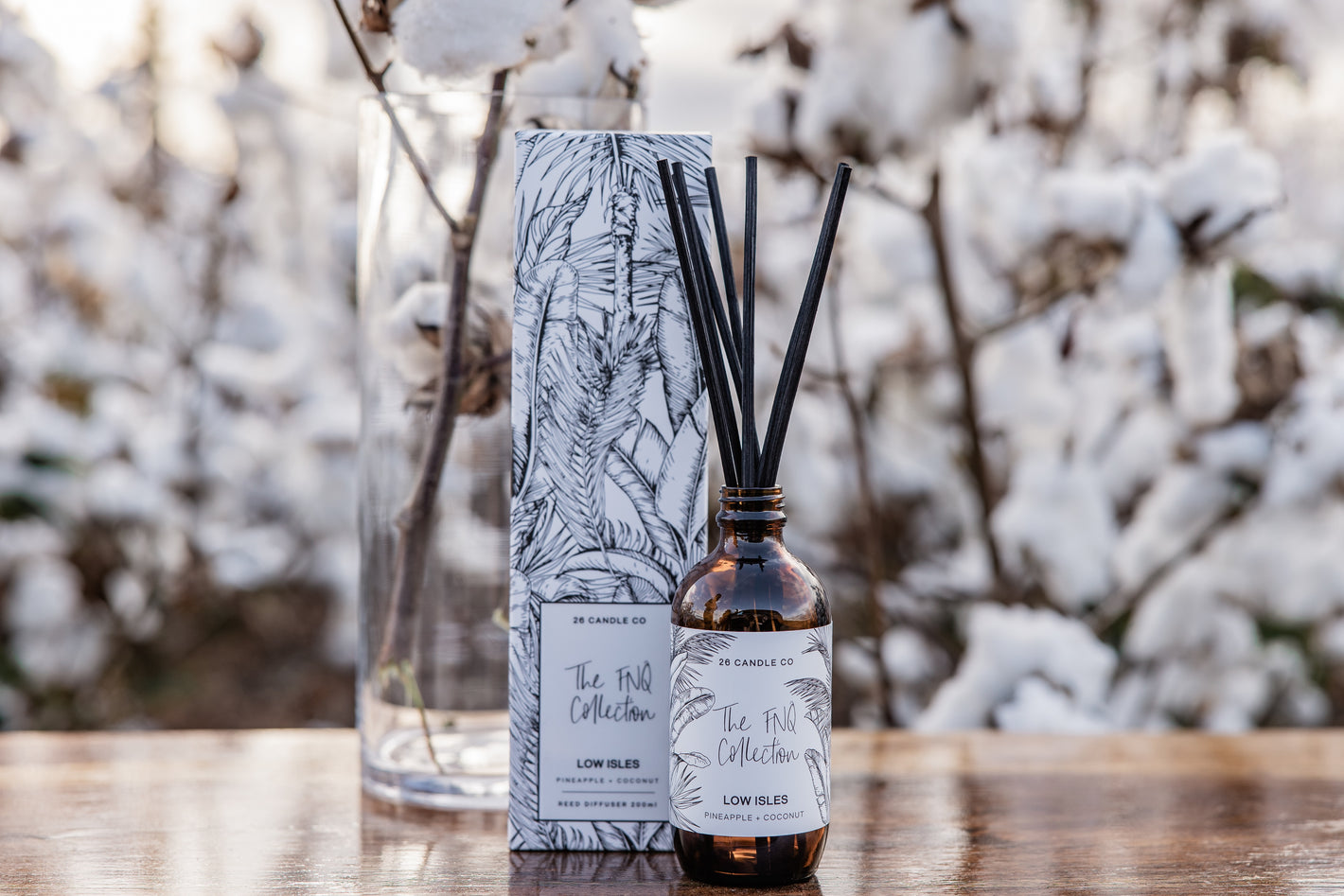 BrowseReed Diffusers are featured in our ‘FNQ Collection’. Available in 9 scents, housed in a rustic Amber bottle with black natural reed sticks, packaged perfectly in our custom boxes. Vegan friendly product, lasting between 8-10 months with correct usage.